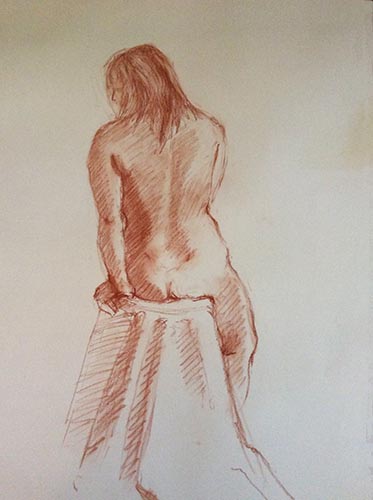 | Seated Nude, pastel pencil, 20" by 16", $300.00 |