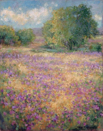 | Field of Ageratums, oil on linen, 11" by 14" |